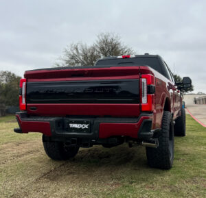 One of the most visually striking upgrades is the Truxxedo package featuring a black roof, which brings a modern, contrast-heavy aesthetic to the build. The black roof creates a streamlined, upscale look that feels intentional and tailored—almost like something you’d expect from a luxury automaker. It adds depth and dimension to the truck’s overall appearance, giving it a customized personality without changing the entire body color. This upgrade helps the Ford F-250 stand out in a subtle yet powerful way, making it look instantly refined. Combined with the other exterior enhancements, the Truxxedo package becomes a key element that ties the whole build together.