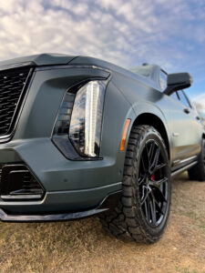 When it comes to full-size luxury SUVs, the Cadillac Escalade continues to set the standard with its commanding presence, premium interior, and unmistakable styling. While the Escalade already turns heads straight from the factory, this custom build takes things several steps further by blending high-end luxury with bold, personalized upgrades. Featuring a full custom wrap, a leveling kit, Vossen wheels, Nitto Recon Grappler tires, and XPEL Ultimate Plus ceramic window tint, this Cadillac Escalade was designed to stand out while maintaining the refined sophistication Cadillac is known for.