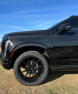Wrapping those wheels are Nitto Recon Grappler tires, a choice that brings real capability to match the upgraded appearance. These tires are designed for drivers who want all-terrain confidence without sacrificing ride quality, and on the Cadillac Escalade they deliver exactly that balance. The tread design offers strong traction in wet weather, light trails, and everyday road conditions, while remaining quiet and smooth enough for long commutes. The subtle sidewall styling also adds to the rugged aesthetic, giving the luxury SUV a more versatile character that feels ready for anything.