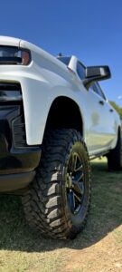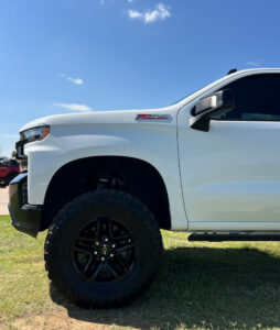 Tires are one of the most important modifications for any truck, and this Chevrolet Z71 is outfitted with Toyo tires that deliver a striking blend of aggressive looks and high-level functionality. Known for their rugged tread design and long-lasting durability, Toyo tires provide the confidence to tackle mud, gravel, and rocky terrain without hesitation. At the same time, they maintain a surprisingly smooth and stable ride on highways, which makes them an ideal choice for drivers who want the best of both worlds. The large sidewalls and bold tread patterns not only contribute to off-road performance but also give the truck a commanding presence that grabs attention immediately. Combined with the lift, the Toyo tires elevate the truck’s appearance, ensuring it stands tall and looks every bit as powerful as it drives.