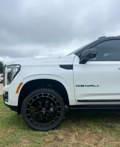 At the heart of this GMC Yukon Denali build are the 24-inch Vossen wheels, a standout choice from one of the most respected names in the aftermarket industry. Precision-engineered and forged for strength and aesthetics, these wheels add a luxurious touch with their bold, modern design. Whether finished in gloss black, brushed aluminum, or a custom powder coat, they elevate the Yukon’s visual presence to show-stopper status.