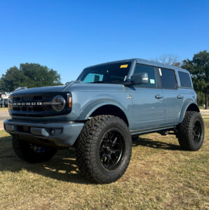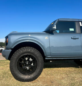 To enhance both performance and style, this Ford Bronco has been fitted with a 3-inch lift kit. The added height gives the SUV a more commanding stance while also improving off-road capabilities. Extra ground clearance allows the Bronco to take on uneven trails, rocky paths, and deep ruts with ease, making it ready for weekend adventures. At the same time, the lift adds space for larger wheels and tires, giving the SUV a bold, aggressive look that turns heads everywhere it goes. The balance of comfort and capability ensures that whether you’re on the highway or the backroads, the Bronco rides with confidence.