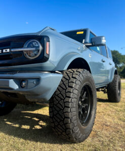 Paired with the Fuel wheels are massive 37-inch Nitto Ridge Grappler tires, designed to handle anything you throw at them. These hybrid all-terrain tires strike the perfect balance between off-road capability and on-road comfort. With aggressive sidewalls and tread patterns, they deliver excellent traction on dirt, gravel, mud, and sand. At the same time, their advanced engineering minimizes road noise for smoother driving on the highway. Together with the lift kit and wheels, the Ridge Grapplers give this Ford Bronco the confidence to conquer any adventure.