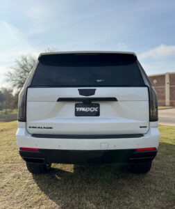 The blacked out emblems bring a refined, contemporary edge to the SUV’s exterior. By replacing the traditional chrome with deep black accents, the Cadillac Escalade takes on an entirely new personality—sleeker, more streamlined, and unquestionably modern. These darkened details pair seamlessly with the wheels and tires, creating a cohesive visual theme that flows beautifully across the vehicle. The blackout treatment eliminates unnecessary flash, replacing it with a bold, confident aesthetic that reflects today’s luxury-custom style trends. Although it may seem like a small change, the impact is undeniable: the Cadillac Escalade looks more curated, intentional, and distinctly high-end.