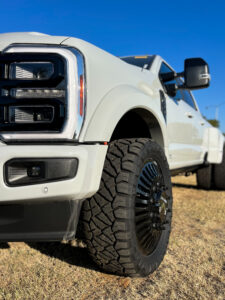 The 3-inch BDS lift kit is one of the most transformative upgrades on this build, drastically changing both the truck’s appearance and capability. BDS Suspension is renowned for its high-quality lift kits that deliver increased ground clearance, improved off-road performance, and enhanced ride quality. By raising the truck’s height by three inches, this lift kit allows the installation of larger tires—such as the Nitto Ridge Grapplers—giving the Ford F-450 better approach, breakover, and departure angles. This means it can tackle steeper inclines, rock obstacles, and uneven terrain with greater ease and confidence. But beyond the off-road benefits, the lift kit contributes to an imposing, aggressive stance that turns heads everywhere it goes. The BDS kit includes upgraded shocks and components designed to maintain factory ride quality and drivability despite the added height. This thoughtful engineering ensures the truck remains comfortable on long highway drives while being fully prepared for rugged adventures.