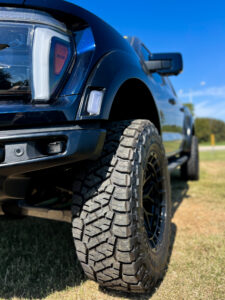 Every custom build needs a foundation of style and strength, and that’s exactly what the Vossen wheels and Toyo tires provide for this Raptor. Vossen wheels are known for their cutting-edge designs and flawless craftsmanship, giving the truck a premium, refined aesthetic that immediately draws attention. Their durable construction ensures long-lasting performance, no matter where the road leads. Wrapped around those wheels are 37″ Toyo tires—engineered to deliver exceptional traction, handling, and reliability in all conditions. The aggressive tread pattern bites into dirt, gravel, and pavement with equal confidence, making the Raptor ready for anything from desert trails to weekend highway cruises. The combination of these two powerhouse brands brings out the best in both worlds—bold, eye-catching looks with unmatched off-road capability. Together, they make a statement that this truck is built for drivers who demand both performance and perfection.