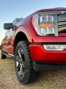 Toyo tires bring a powerful combination of rugged design and dependable performance to this Ford F-150, enhancing the truck’s capability on multiple fronts. Known for their durability, Toyo tires are engineered with advanced rubber compounds that withstand harsh terrain, heavy loads, and long-term wear. Their aggressive tread pattern not only boosts traction on loose gravel, mud, and wet pavement but also adds a bold visual element that immediately toughens the truck’s stance. On the highway, they maintain a controlled and stable feel, ensuring the truck rides smoothly and confidently at any speed. This balance of off-road capability and on-road comfort makes Toyo a perfect choice for truck owners who demand reliability without sacrificing aesthetics.