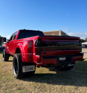While much of the build focuses on style and presence, the Truxx spray-in bed liner ensures the Ford F-450 is still ready to work as hard as it looks. This heavy-duty liner provides a durable, textured surface that resists scratches, dents, and corrosion—essential for a truck frequently used to haul equipment, tools, or recreational gear. Unlike drop-in liners, the spray-in application conforms perfectly to every corner and contour of the bed, offering maximum protection without shifting or rattling. Whether it’s hauling materials for a job site or loading up for a weekend adventure, this liner ensures the bed stays clean, protected, and ready for anything.