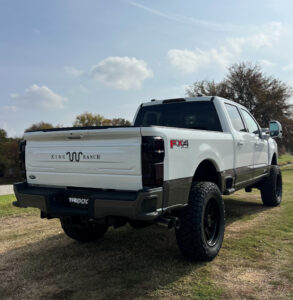 One of the most visually striking aspects of this Ford F-250 is its two-tone custom paint job. This level of craftsmanship transforms the look of the truck, highlighting its strong body lines and giving it a level of personality and depth that stock paint could never achieve. The seamless transition between the two colors adds dimension and sophistication, while the paint’s rich finish reflects light beautifully from every angle. Achieving a result this clean and flawless requires experience, precision, and attention to detail—qualities that shine through in the final product. The two-tone design sets this Ford F-250 apart from the crowd, turning it into a rolling piece of art that draws attention wherever it goes.