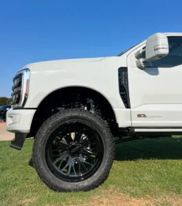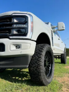 The suspension is the core of any lifted truck, and the 4-inch BDS lift kit on this F-250 sets the tone for the rest of the build. BDS is known for designing lift kits that maintain factory ride quality while enhancing performance and durability, which is crucial for a truck that will be driven daily. By raising the truck four inches, this kit provides more ground clearance for off-road conditions, improves approach and departure angles, and creates room for larger wheels and tires. Unlike simple spacer lifts, BDS kits are engineered with proper suspension geometry in mind, so the truck handles predictably whether it’s towing, hauling, or cruising down the highway. The result is a lift that not only improves the visual stance of the F-250 but also adds genuine capability, making it better prepared for whatever terrain it faces.