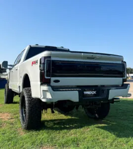 No matter how customized or refined a truck becomes, it still needs to be ready to handle tough jobs. That’s why this F-250 features a Truxx spray-in bed liner, one of the most practical upgrades available. Unlike drop-in liners that can shift around or trap moisture underneath, a spray-in liner creates a permanent, durable coating that bonds directly to the bed of the truck. This layer of protection prevents scratches, dents, and rust, making it ideal for hauling tools, construction materials, or heavy equipment. The textured surface also adds grip, helping to keep cargo from sliding around while driving. Beyond its practicality, the spray-in liner gives the bed a rugged, finished look that matches the strength of the rest of the build. It’s a detail that shows this truck isn’t just for show—it’s built to be used.