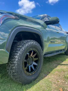 Wheel upgrades are often the centerpiece of any truck build, and this Toyota Tundra takes it up a notch with a set of Method Race Wheels 317. These wheels are designed with off-road durability in mind, featuring a solid A356 aluminum construction and T6 heat treatment for superior strength. The 317 model sports a bold, 12-spoke design with a matte black finish and debossed Method logos that add a clean, tactical aesthetic. With a high load rating and beadlock styling, they’re engineered to handle everything from backcountry rock crawls to highway towing—all while elevating the truck’s overall appearance.