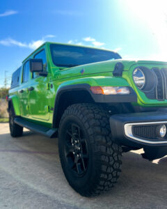 A high-quality build deserves high-quality protection, and the XPEL Ultimate Plus ceramic window tint delivers exactly that. This premium tint provides exceptional heat rejection, helping keep the cabin cool even under intense sunlight. It blocks harmful UV rays that can damage interior materials and cause discomfort during long drives. On the outside, the tint enhances the Jeep Gladiator’s appearance with a clean, modern finish that adds both privacy and style. Its clarity ensures visibility remains sharp day or night, making it the perfect blend of performance and aesthetics. This upgrade not only enhances comfort but also elevates the truck’s look in a subtle yet impactful way.